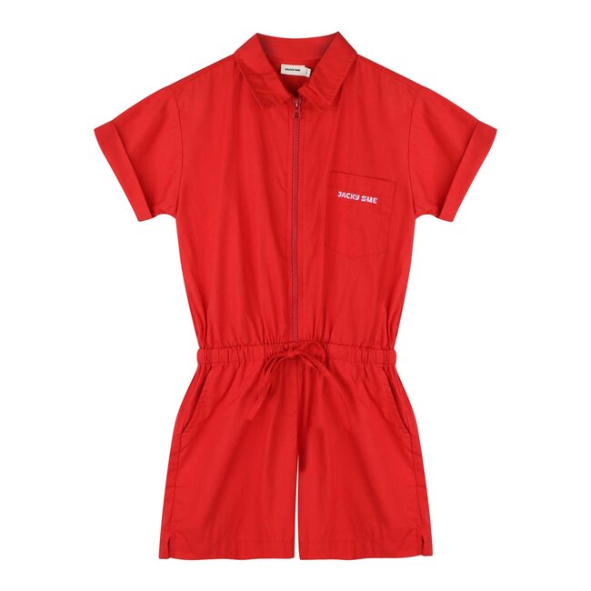 Designed with a front zip, short sleeves and a flattering waist tie, this playsuit is easy to wear and perfect for everyday adventures. The chest pocket with the little Jacky Sue logo adds the cutest branded detail and completes the sporty vibe.
