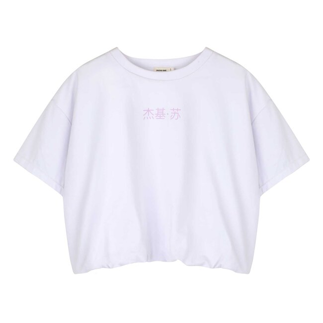 Clean, cool and effortlessly stylish! The Uma Tee is a fresh white t-shirt with Chinese characters on the front that spell Jacky Sue.